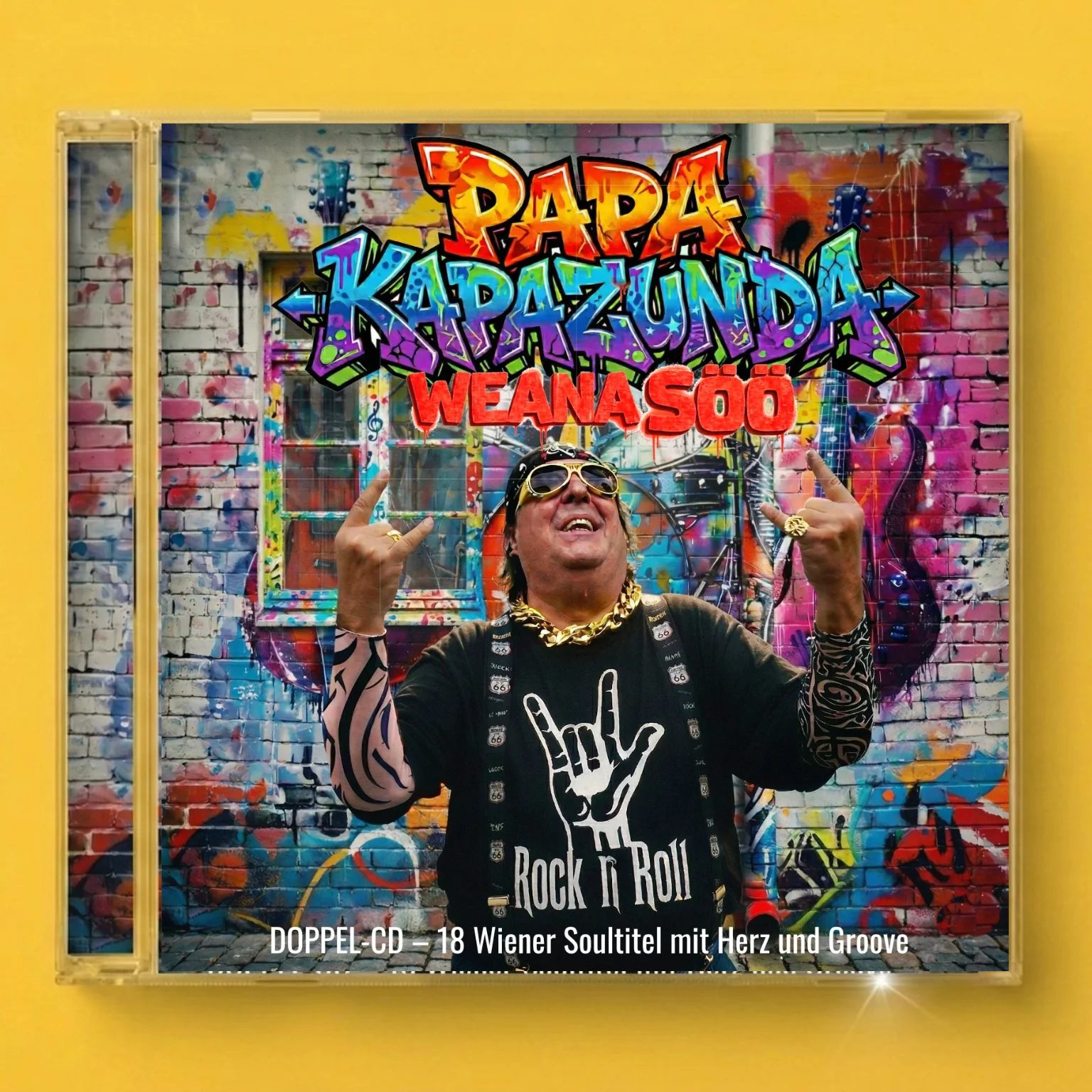 Er hat den Wiener Schmäh im Blut, den Groove in den Fingern und die Stadt im Herzen – PAPA KAPAZUNDA ist kein Musiker, er ist eine Naturgewalt! Mit „WEANA SÖÖ“ reißt er alle Genre-Grenzen ein und schleudert ein Doppelalbum in die Welt, das Wien so laut, roh und lebendig erklingen lässt, wie es noch niemand zuvor getan hat.